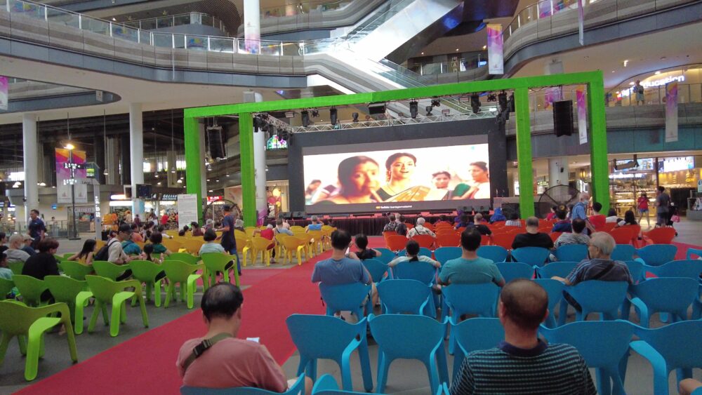 土日は映画のPublic Viewing(無料公開)が行われていて市民の方が映画を楽しんでいます。